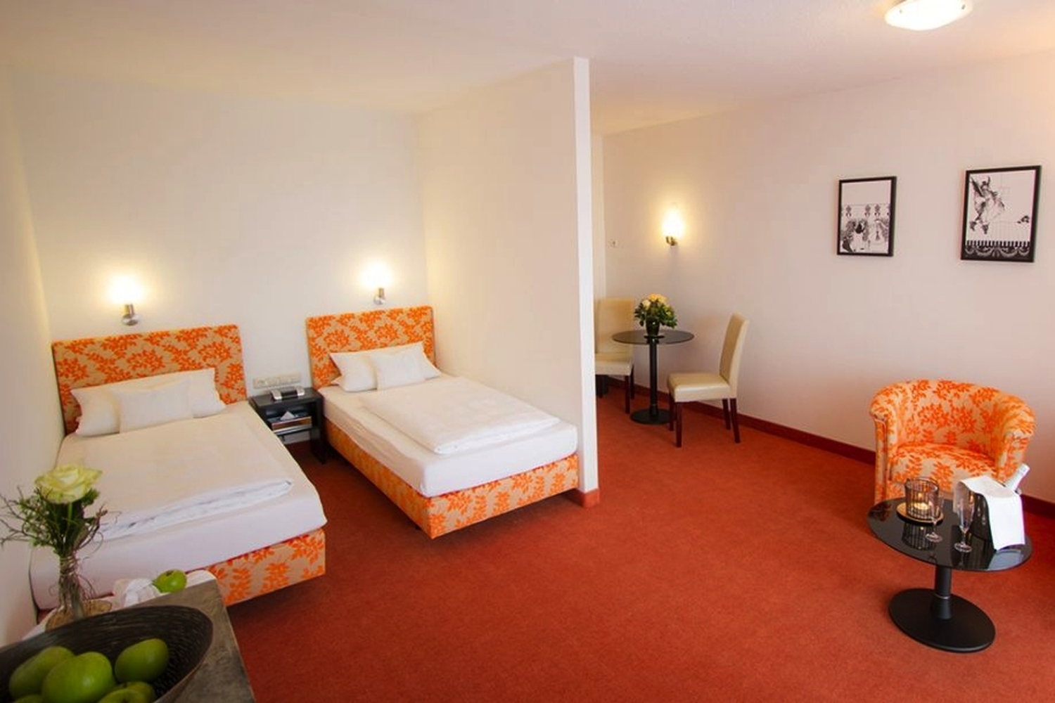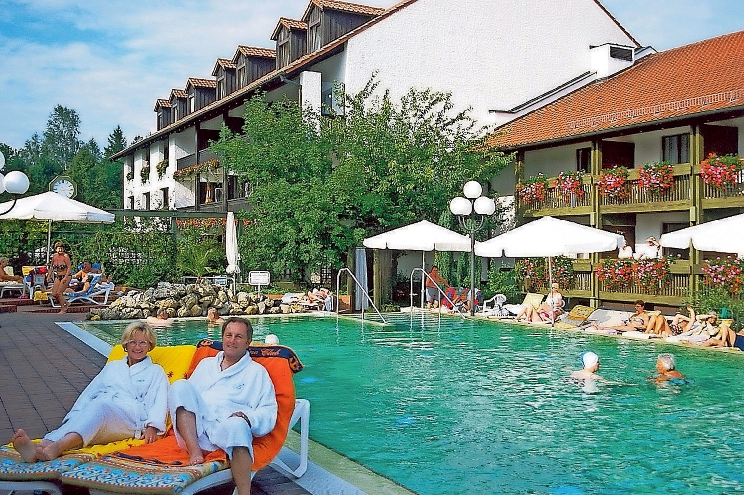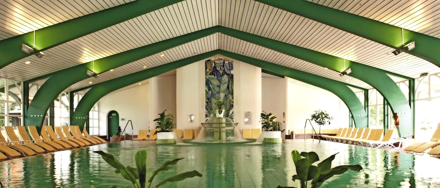 Kur und Wellness: In der hauseigenen 1.600 m² großen „Poseidon-Therme“ erwarten Sie ein beheiztes Süßwasser-Freibad (15 x 8 m, ca. 28°C), Thermal-Innenbecken (13 x 8 m, ca. 36°), Kneipp-Tretbecken, Hot-Whirlpool, Dampfgrotte, Infrarotkabine, Solarium (gg. Aufpreis) und eine gepflegte Liegewiese. Im Beautybereich und der Physiotherapie-Abteilung der Therme können Sie sich gegen Gebühr bei vielseitigen Wellness- und Therapieangeboten verwöhnen lassen (10% Ermäßigung auf Massage- und Kosmetikanwendungen). Alternativ können Sie im Hotel Nordic Walking-Stöcke (kostenfrei, nach Verfügbarkeit) leihen und die schöne Umgebung erkunden.
