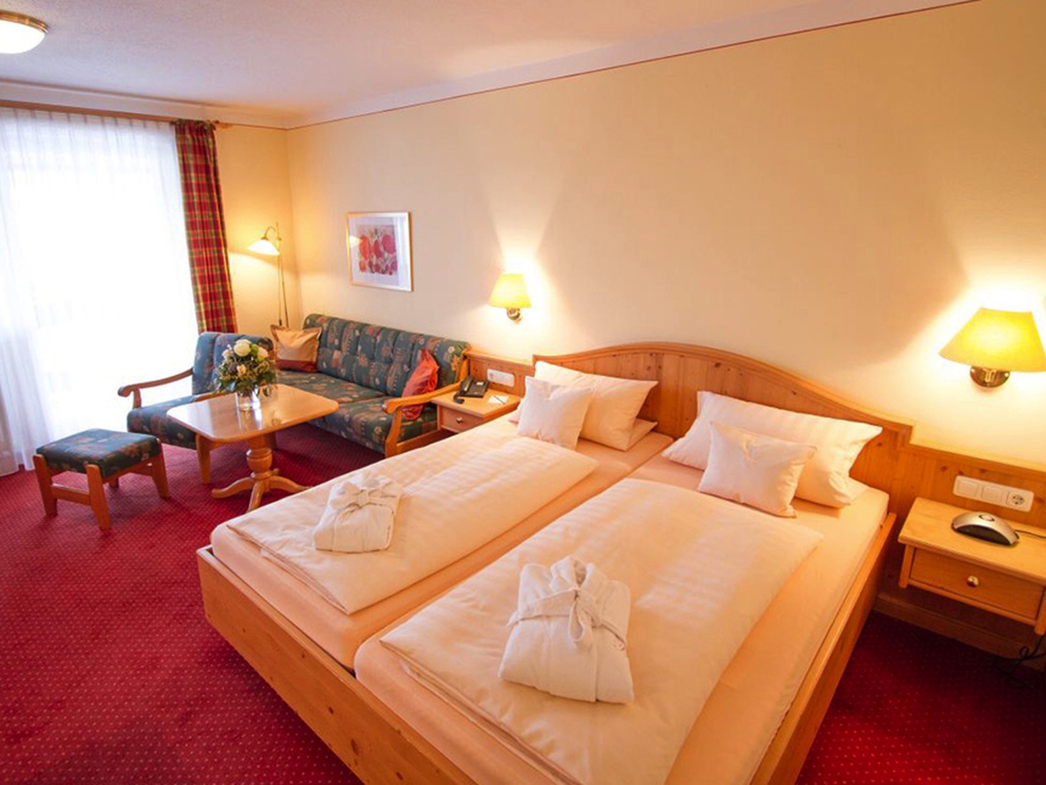 Zimmer: Das Hotel verfügt über 123 Zimmer, die auf das Haupt- und Nebenhaus verteilt sind. Die Standard-Zimmer verfügen über Bad/WC, Sat.-TV, Telefon, Minibar, 1 Flasche Wasser, Safe und teilweise über Balkon oder Terrasse. Die Doppelzimmer Komfort (Aufpreis € 70,- pro Person und Woche) sind bei gleicher Ausstattung etwas größer und verfügen über Dusche/WC und einem Balkon.