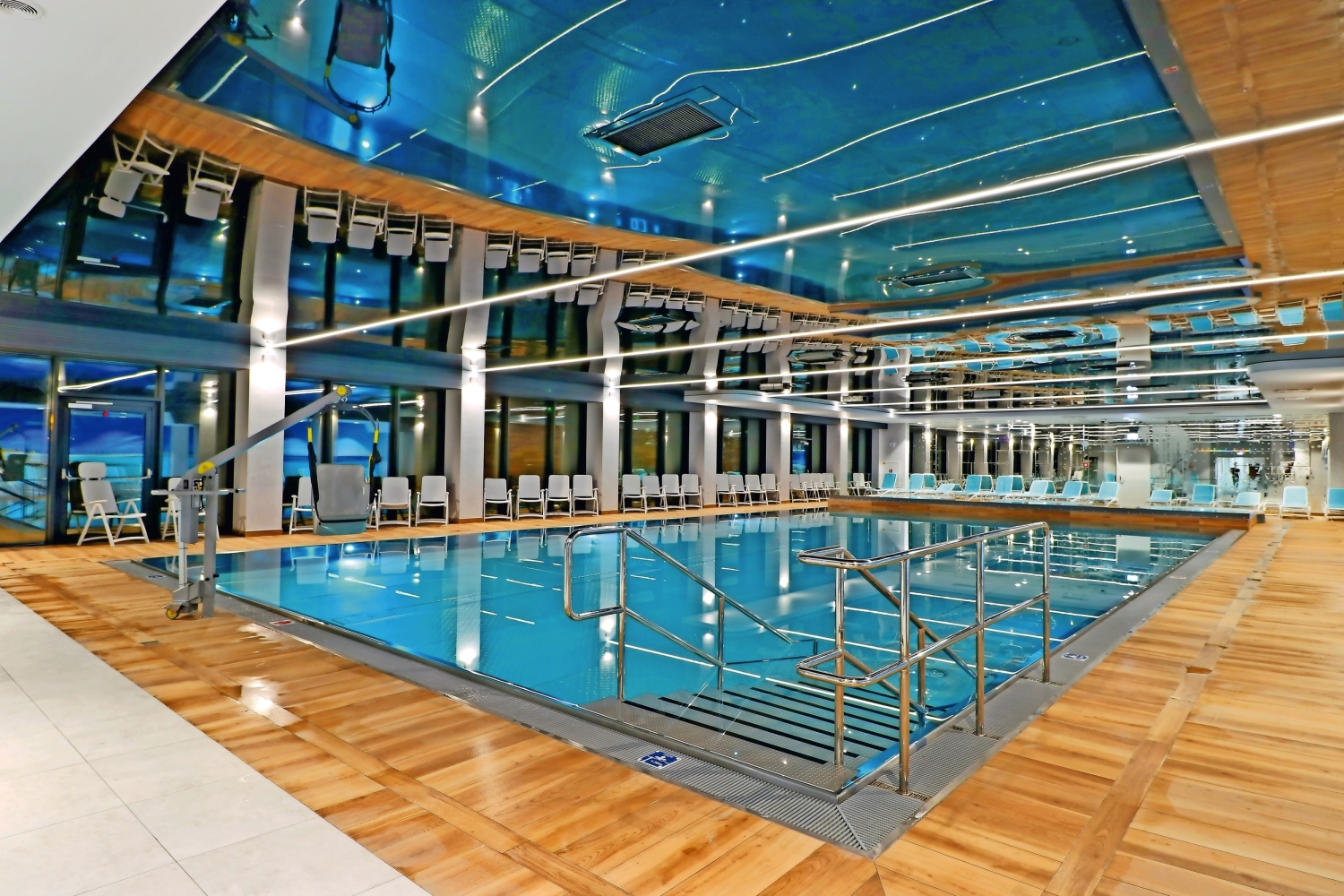 Kur und Wellness: Im modernen Kur- und Wellnessbereich können Hallenbad (20 x 13 m, ca. 29°C), drei Whirlpools und die Saunalandschaft mit Dampfsauna, Trockensauna, Relaxzone und Fitnessraum frei genutzt werden. U.a. werden Moorpackungen, Inhalationen, Laser-, Elektro-, Kryo- und Magnetfeldtherapien sowie Ultraschall und Massagen angeboten. 2 Kuranwendungen pro Werktag (Mo.-Fr.) und 1 klassische Teilmassage pro Aufenthalt nach medizinischer Verordnung inklusive .