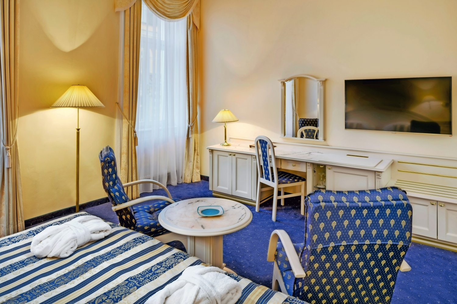 Lage: Das Hotel zählt zu den architektonischen Schmuckstücken Marienbads. Hier wohnen Sie nur wenige Schritte vom Kurpark und der berühmten Kolonnade entfernt, direkt an der Hauptpromenade.