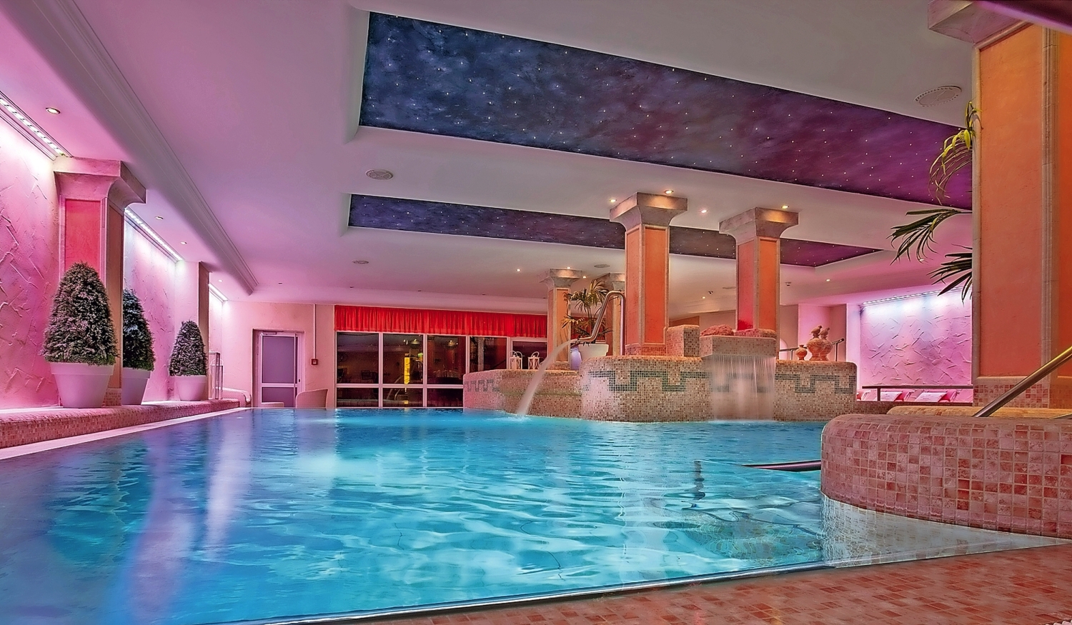 Kur und Wellness: Hoteleigene Thermal- und Saunalandschaft mit über 1.000 m² Fläche. Bewegungsbad (10 x 12 m, ca. 37°C) mit dem gesunden Thermalwasser aus der Ursprungsquelle der Therme I, beheizbares Außenbecken mit Thermalwasser (ca. 28°, Mai bis Anfang Oktober, witterungsabhängig) und eine Saunalandschaft. Enstpannen Sie sich in der finnischen und Heusud-Sauna, im Dampfbad, im Blütenlaconium mit Farblicht- und Kräuterstimulation, in Meeresklimakabine mit temperierten Wasserbetten, einem Hot-Whirlpool, im Kneippenbecken, in der Erlebnisduschen. (Arztpraxis in unmittelbarer Nähe des Hotels) u.v.m. Zur Verbesserung Ihrer körperlichen Fitness erwartet Sie im klimatisierten Fitnessraum ein zertifizierter Trainer mit verschiedenen Sportangeboten.