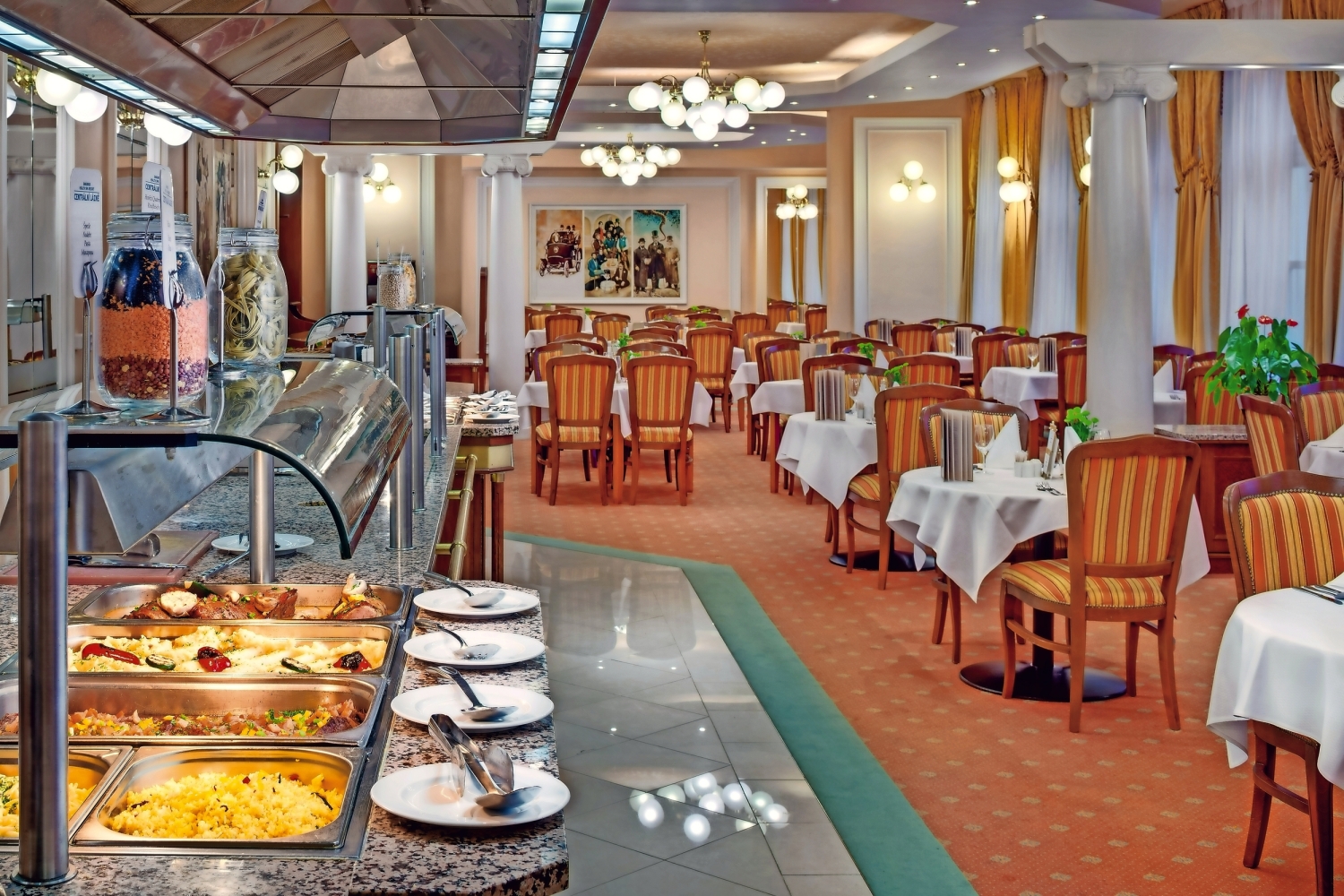 Verpflegung: Sie buchen Halbpension in Buffetform. Diätkost auf Anfrage. Trinkwasser zu den Mahlzeiten inklusive. Aufpreis Vollpension mit Vital-Mittagessen: € 84,- pro Person und Woche.