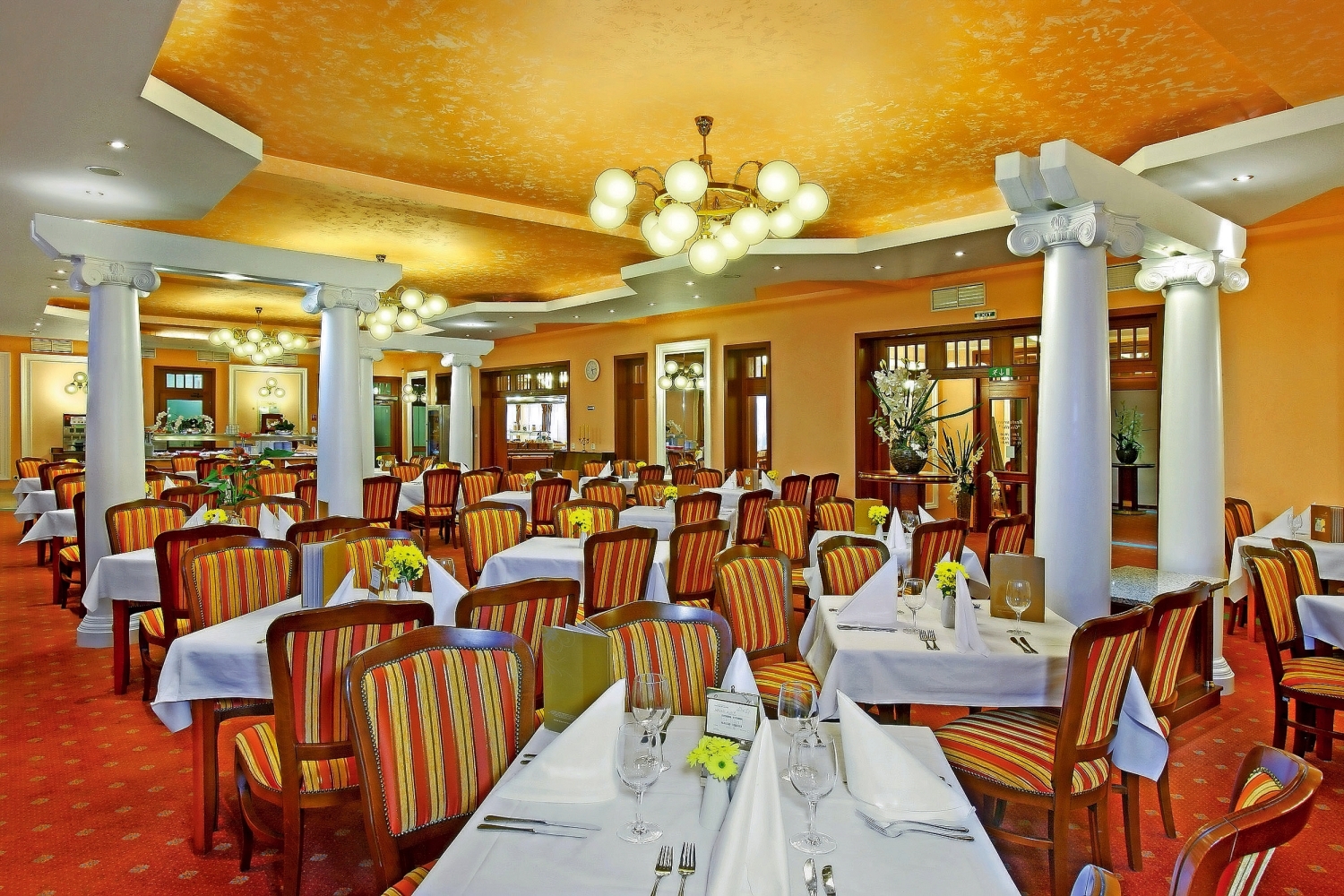 Kur und Wellness: Das Resort verfügt über eigene Mineralquellen (Ambrosius- und Balbínquelle), die für wohltuende Anwendungen wie Trinkkuren, Mineralbäder, Moor- und Gastherapien genutzt werden. Die Kur-Anwendungen werden in den Häusern Centrální Láznĕ, Maria Spa oder Nové Láznĕ durchgeführt. Entspannte Stunden können Sie auch im Römischen Bad mit drei Schwimmbecken (4 x 4 Meter, 4 x 5 Meter, 4 x 6 Meter, alle ca. 32°C) und Saunalandschaften des Kurhotels Nové Láznĕ oder im Aqua-Wellnesszentrum mit Schwimmbecken (18 x 8 Meter, ca. 31°C) des Resorts Hvĕzda verbringen. Nutzung des Premier Fitness Clubs inklusive. 12-14 Kuranwendungen pro Woche im Preis enthalten. Aufpreis Klassische Heilkur mit 24 Anwendungen pro Woche: € 112,- pro Person und Woche.