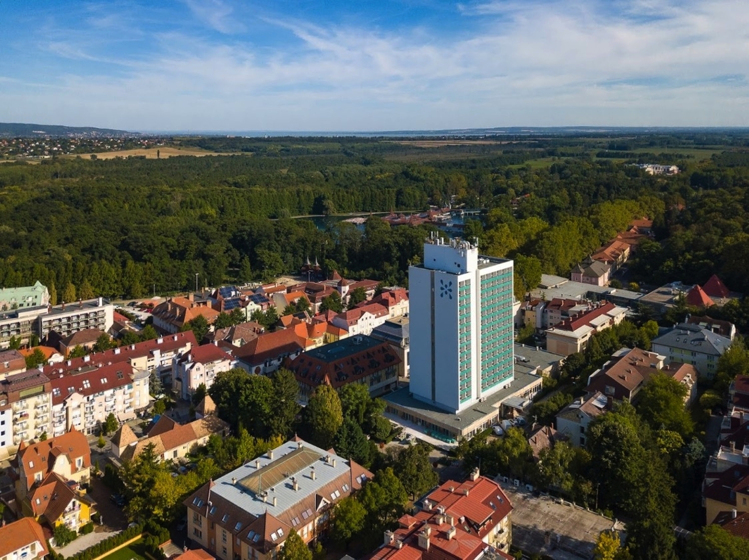 Allgemeine Informationen: Das empfehlenswerte Hotel liegt im Stadtzentrum von Hévíz, nur ca. 150 Meter vom See entfernt. Von den oberen Stockwerken des Hotels (Superior Zimmer) hat man eine schöne Sicht auf die Stadt, den Badesee und das Hügelland. Das Hotel ist mit dem Heil- und Erlebnisbad St. Andreas (Aufpreis) verbunden, das Sie im Bademantel über einen geheizten Korridor erreichen, ohne ins Freie gehen zu müssen. Dienstleistungen im Hotel: Lobby Bar, hoteleigene Saunawelt und Beautyabteilung. Kostenloses Internet im Hotel (WLAN). Wöchentlich mehrmals abends Live-Musik in der Lobby Bar.