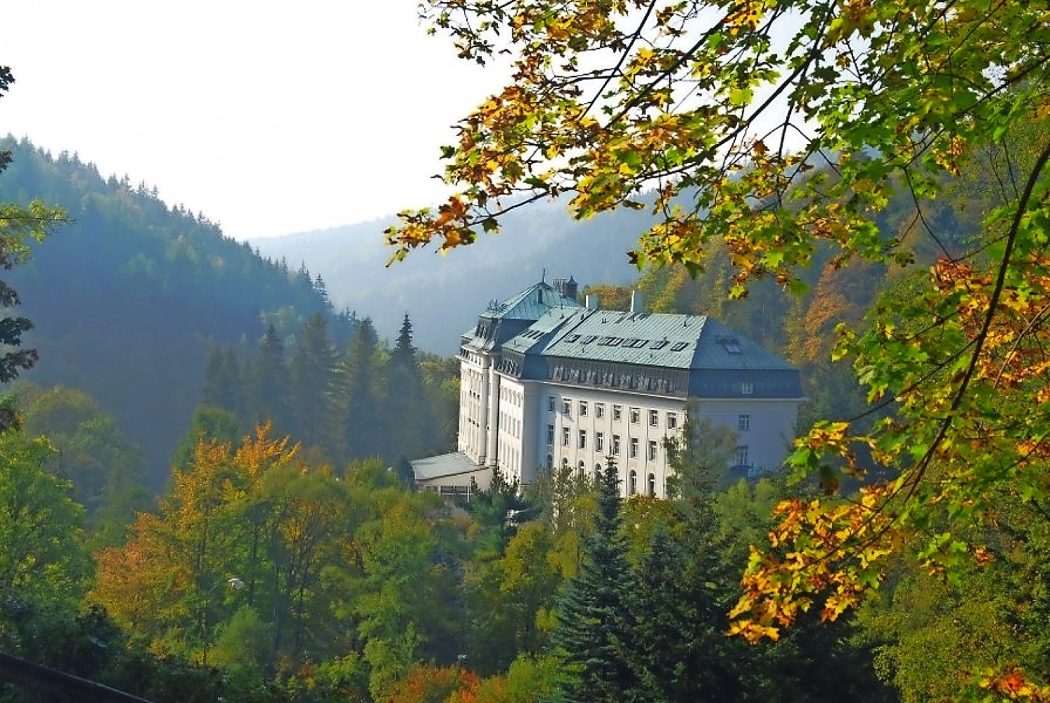 Lage: Das Kurhotel Radium Palace liegt inmitten eines weitläufigen Waldparks am Ortseingang von St. Joachimsthal.