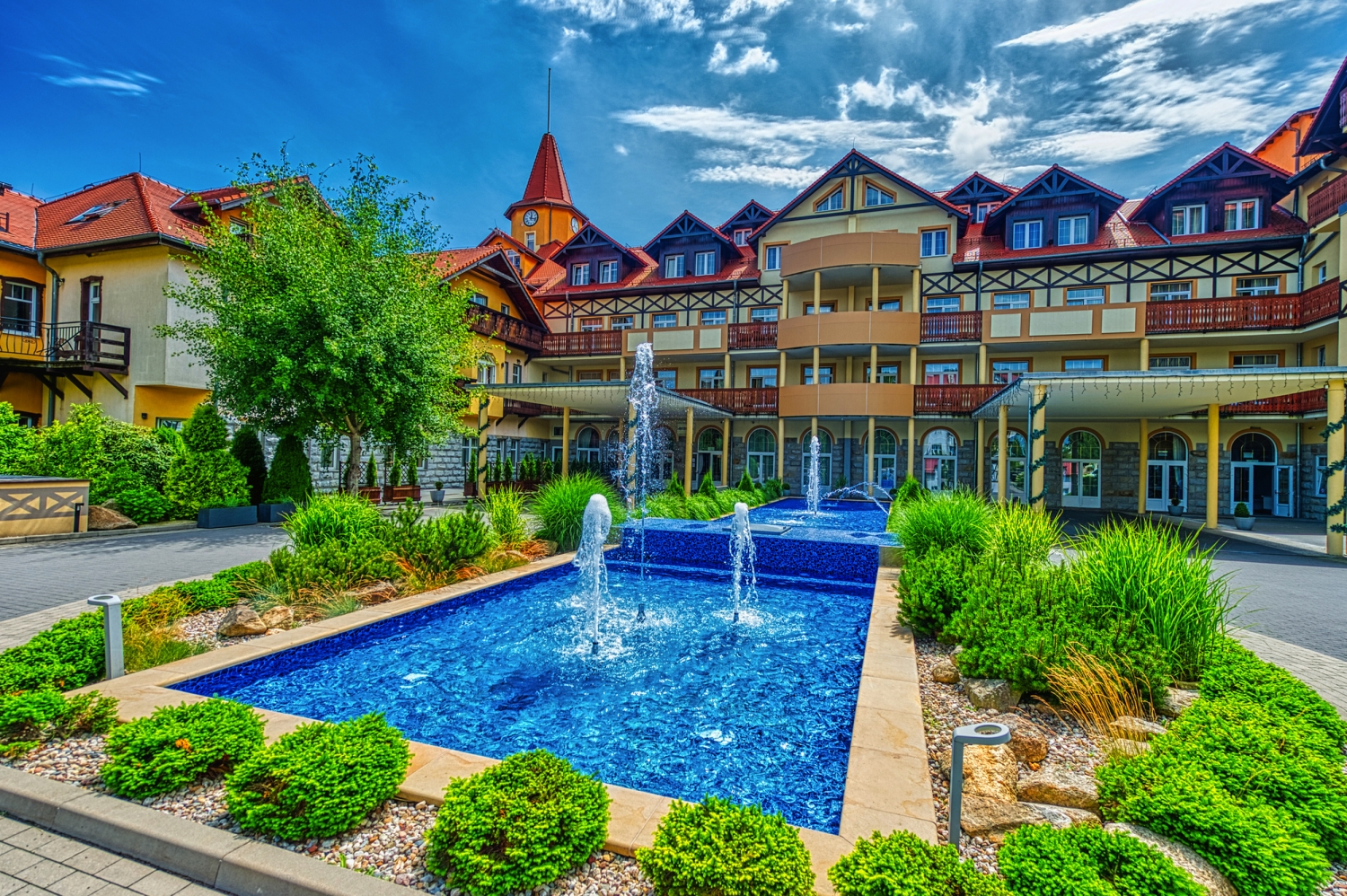 Ausstattung: Das moderne Hotel verfügt über ein Restaurant, Lifte, eine Lobby- und eine Heilwasser-Bar sowie einen Biergarten. WLAN steht in der Empfangshalle kostenfrei zur Verfügung. Der Außenpool kann saison- und wetterabhängig genutzt werden.