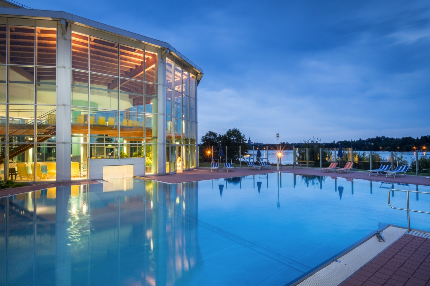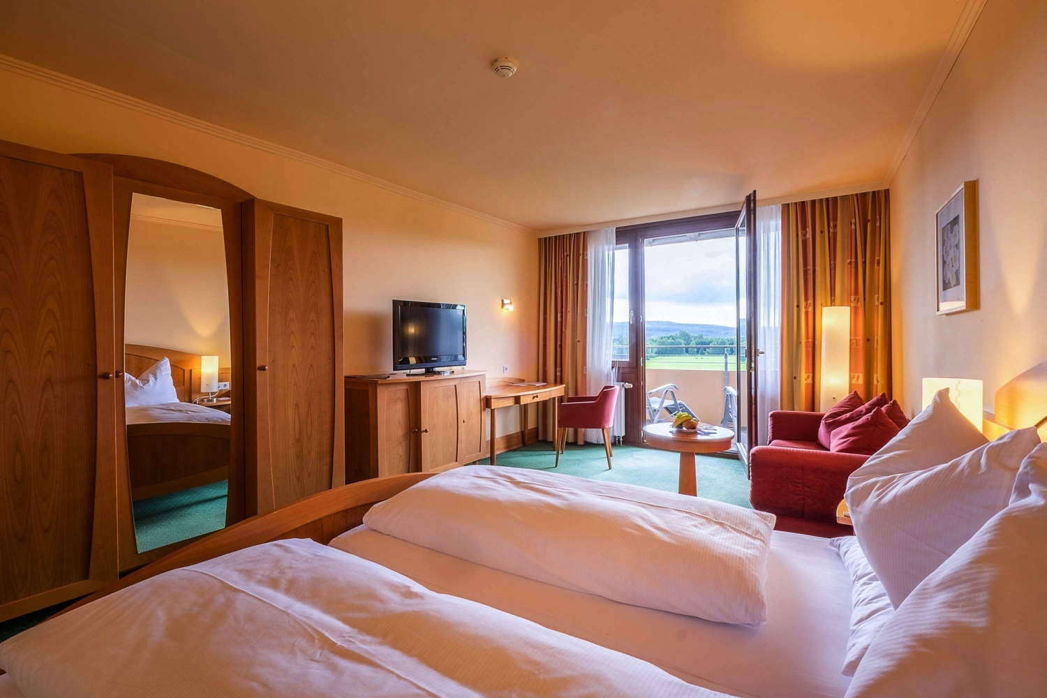 Zimmer: Die lichtdurchfluteten, behaglich eingerichteten 126 Zimmer und Suiten versprühen Wohlfühlatmosphäre und sind mit Dusche/WC, Fön, Sat.-TV, Radio, Telefon, Kühlschrank, kostenfreiem Internetzugang (WLAN), Safe, Leihbademantel und Balkon ausgestattet. Aufpreis Doppelzimmer Komfort mit Kühlschrank und Seeblick: € 13,- pro Person und Nacht; Aufpreis Premium Doppelzimmer mit regionaler Tageszeitung, Kaffee-/Tee-Ecke, Gesundheitskopfkissen-Menü und weiteres: € 20,- pro Person und Nacht