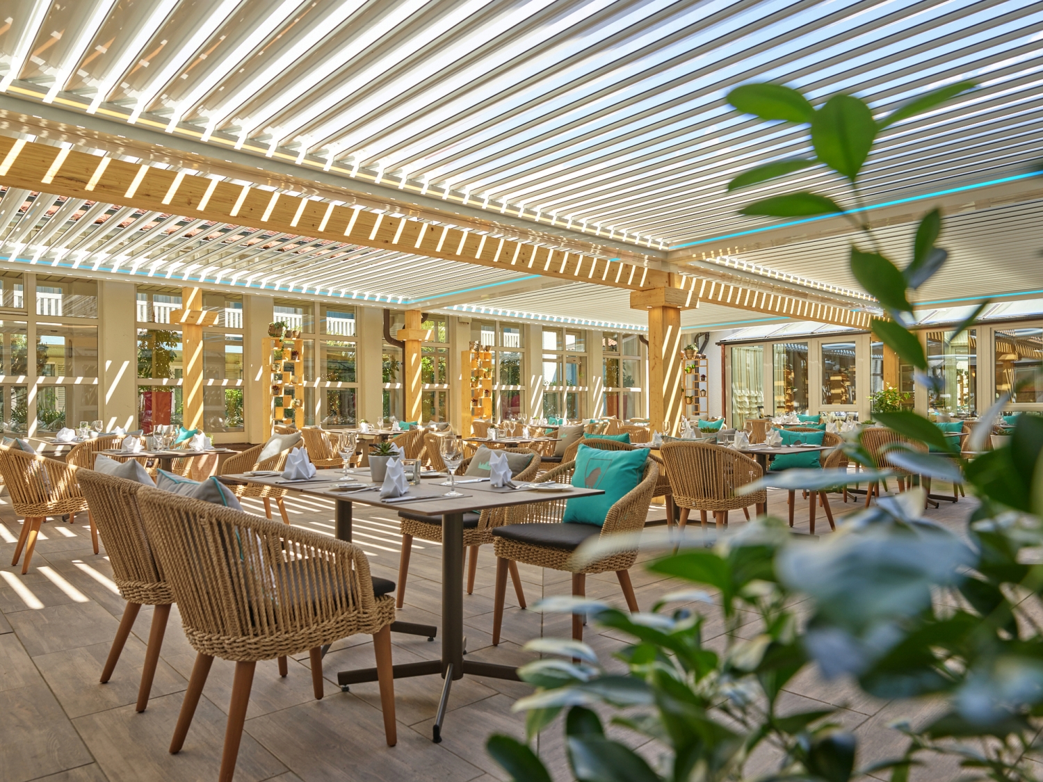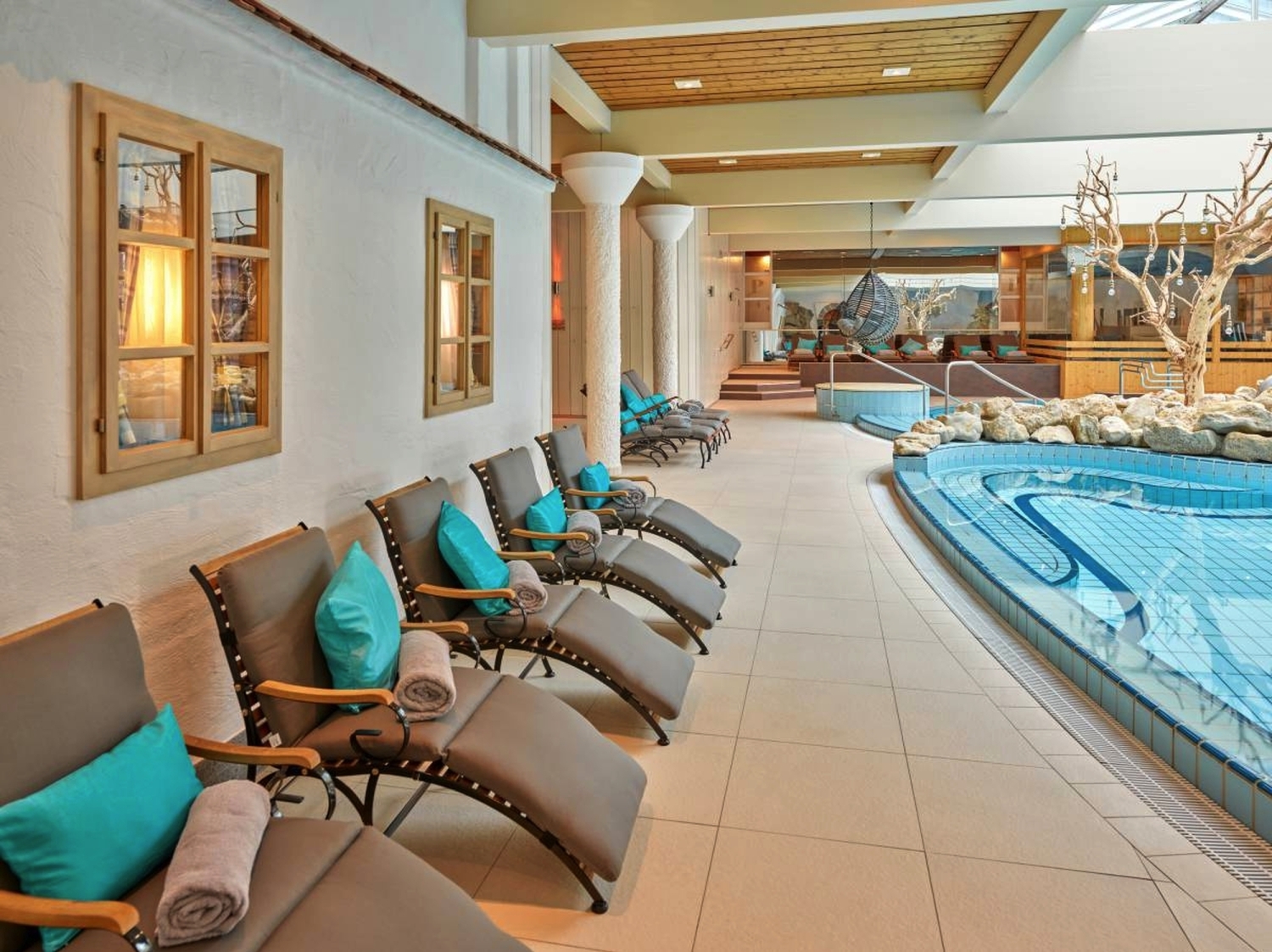 Kur und Wellness: Abwechslungsreiches Sport- und Aktivprogramm. Der Wellnessbereich mit Thermalpool, Verschiedene Saunen, Sabbia Med Lichttherapie, Infrarotkabine, Ruheraum und Thermenbistro. Die exklusive Natur-Heil-Therme steht dabei ausschließlich den Gästen des Hotels zur Verfügung.