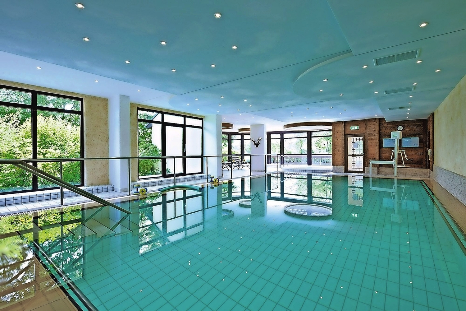 Kur und Wellness: Das renommierte Thermalhotel besitzt eine eigene Wohlfühl- und Gesundheits-Oase mit Thermal-Hallenbad (6 x 9 m, ca. 36°C) und Whirlpool, die mit quellfrischem Bad Füssinger Heilwasser gespeist werden. Saunabereich mit klassischer finnischer Sauna, Dampfbad, Salzgrotte sowie zwei Erlebnisduschen. Im Liegebereich finden Sie neben einem Wandkamin bequeme Relaxliegen mit Decken und einer Sitzecke. Im hauseigenen Kurbereich werden Ihnen gegen Aufpreis wohltuende Anwendungen wie spezielle Massagen (Aroma, Fußreflex, Entgiftung, etc.), Heißluft- und Elektrotherapie, angeboten. 1 Aromaöl-Massage (ca. 30 Min.) sowie 1 Rücken-Massage (ca. 20 Min.) pro Person und Woche sind im Preis enthalten. Aktive Erholung verspricht der hoteleigene Fitnessraum oder eine Entdeckungstour mit den Leihfahrrädern des Hotels (gg. Gebühr). Täglicher Eintritt in die Johannesbad Therme inklusive (außer am An- und Abreisetag).