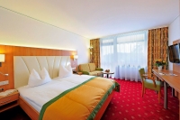 Zimmer: Die 78 Zimmer im Appartementcharakter verfügen über Dusche/WC, Fön, Leihbademantel, Sat.-TV, Radio, Durchwahl-Telefon, Safe, Balkon sowie eine funktional ausgestattete Kaffee- und Teeküche. Aufpreis Komfortzimmer mit Blick ins Grüne (Richtung Johannesbad Therme): € 35,- pro Person und Woche.